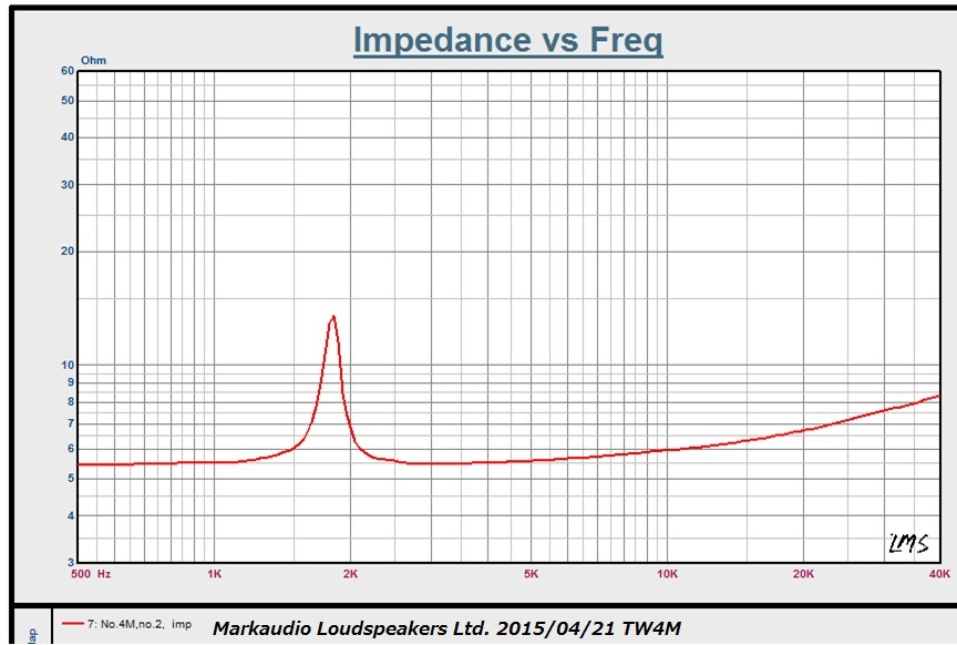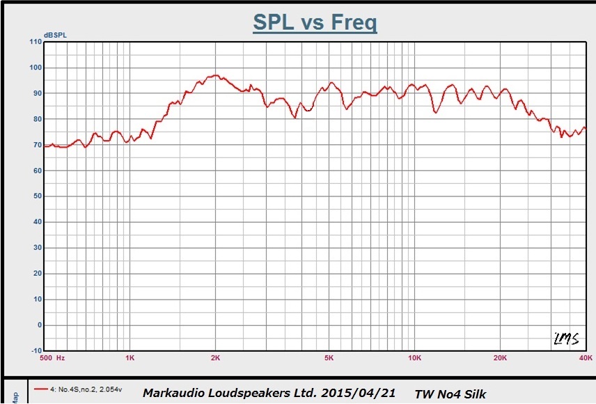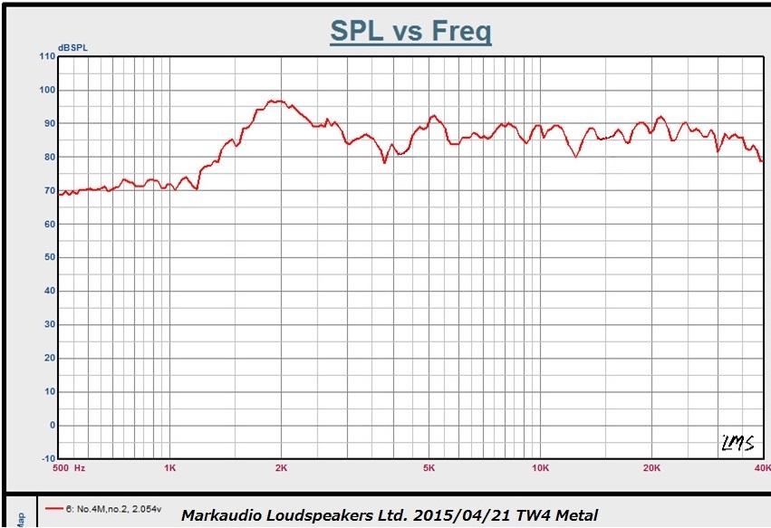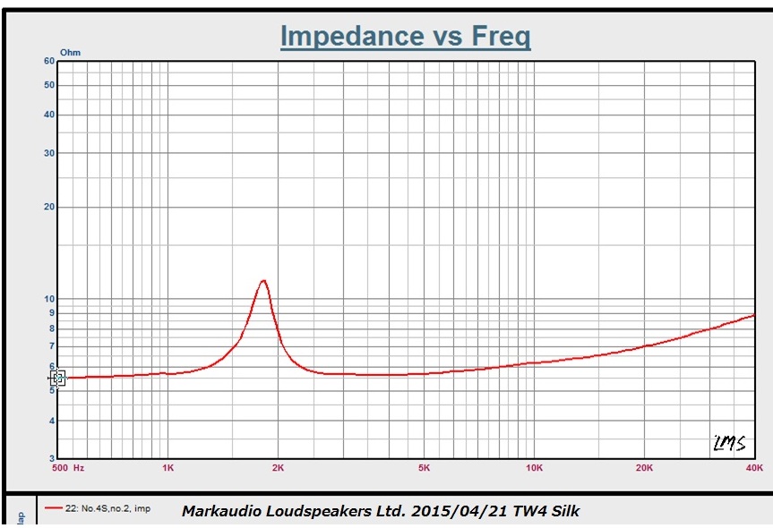 LMSの生データですが非常に綺麗でフラットな特性です。この価格帯で本当に35K まで綺麗に伸びているツィーターは稀で、このコストパフォーマンスが実現したのはDuo60の開発とコストシェアをしたことによります。試算上は単独で開発した場合は40%ほど価格が上昇します。